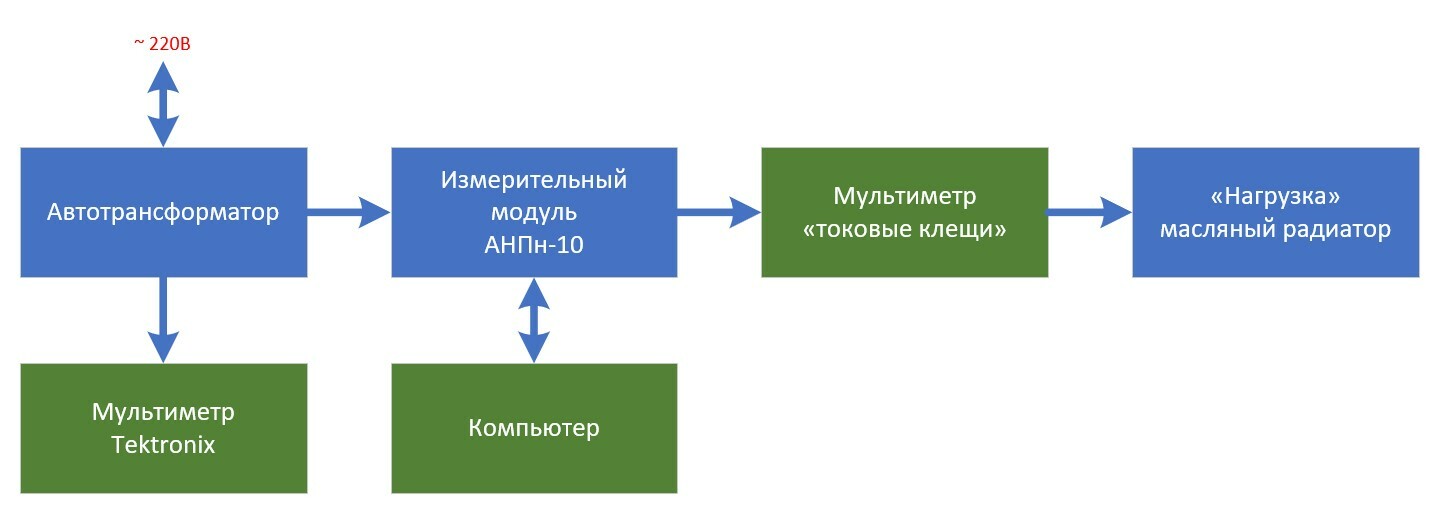 Испытания работы анализатора переменного тока на основе модуля АЦПн-10 Испытательный стенд содержал: