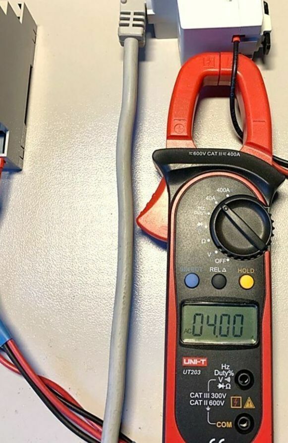 не более 0.2% по напряжению и 2.5% по току от результатов измерения токовых клещей UT-203.
