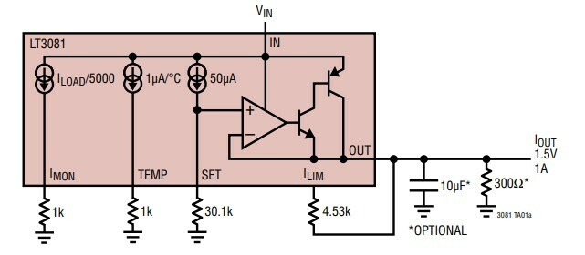 Кроме получения фиксированных напряжений (питания, в основном), отдельной задачей является разработка управляемых преобразователей напряжения. Рассмотрим интересное на наш взгляд решение задачи управления напряжением на базе микросхемы LT3081.