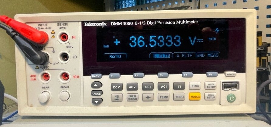 Uтр. измеренное = 36.5 В