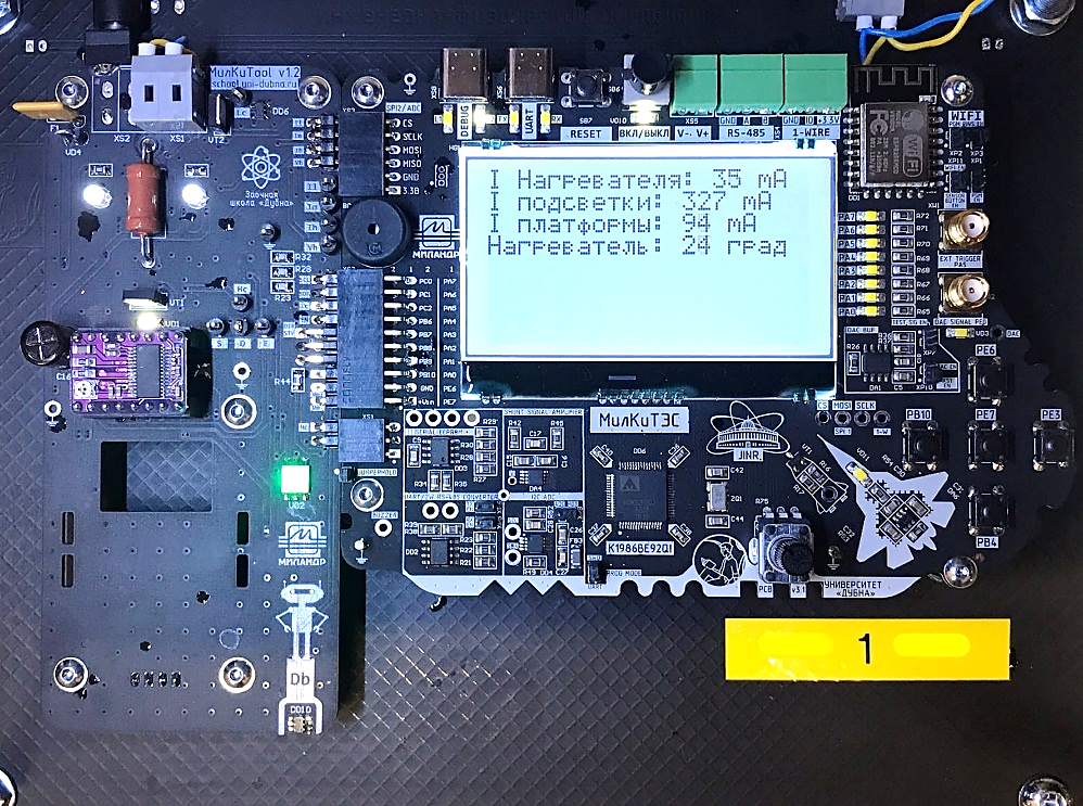 Подключенные к разным периферийным модулям микроконтроллера, эти каскады позволяют изучить основы микроконтроллеров на реальных примерах, позволяют понять суть решений на базе микроконтроллеров. МилКиТЭС имеет модульную структуру, в которой к основной плате с микроконтроллером могут быть подключены разные дополнительные платы – «Тулы» (от англ. - tool). Так, например, в составе линейки подключаемых модулей есть модуль управления электродвигателем, модуль управления светодиодной лентой, модуль для изучения систем автоматического управления с обратной связью. В состав платы МилКиТЭС входят следующие функциональные элементы: