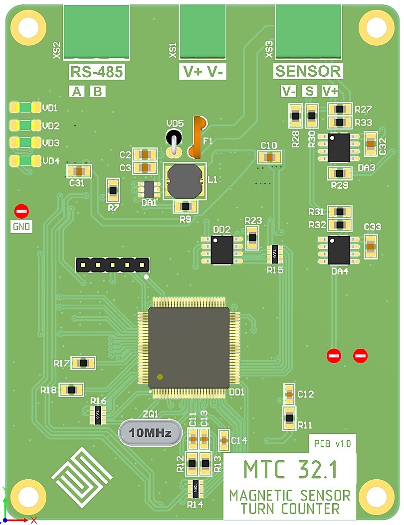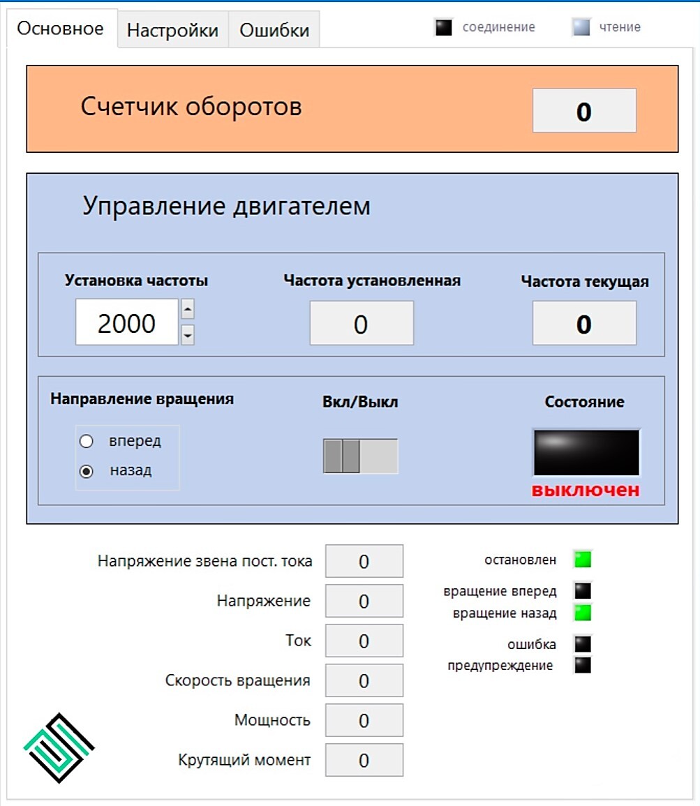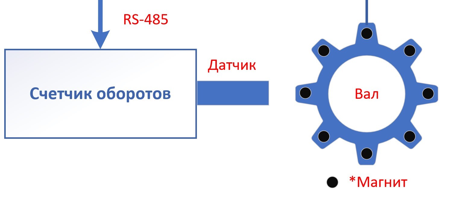 Механическую часть работы заказчик выполнил самостоятельно – валы были установлены, все передаточные механизмы и узлы – тоже, нами разработана только система управления вращением вала и счета его оборотов. Управление движением вала происходит из программы на компьютере через преобразователь Ethernet/RS-485
